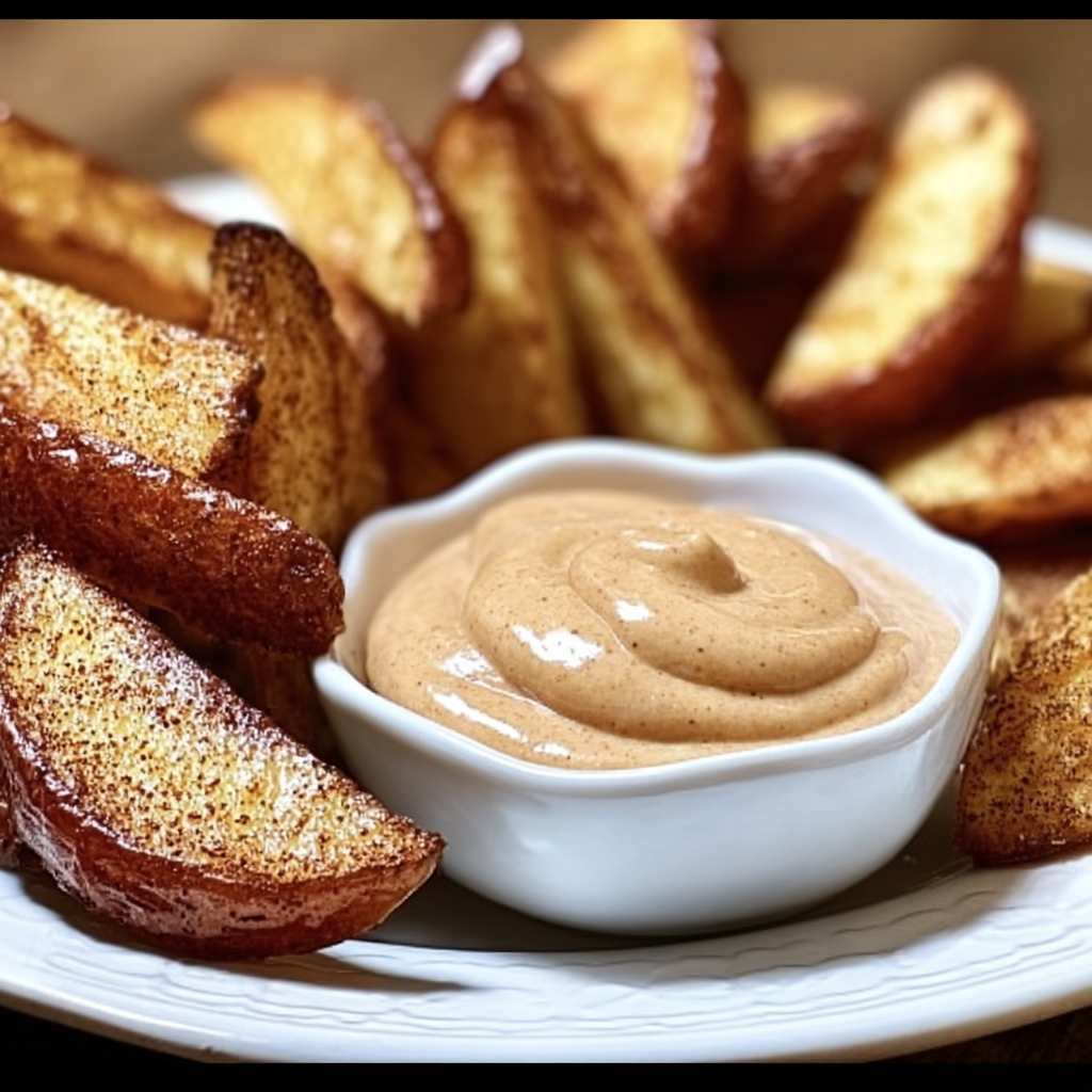 The result delivers warm, spiced apple wedges with indulgent yet lighter dipping sauce.