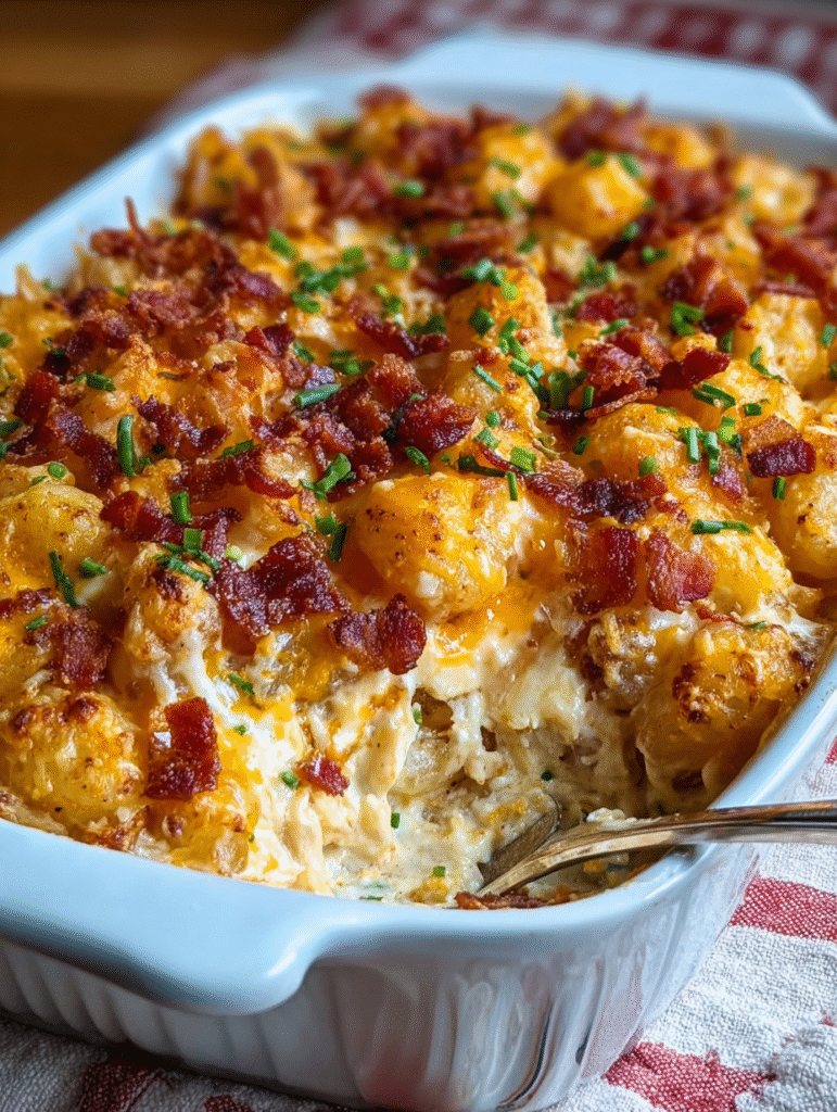 If there’s one casserole that can unite picky eaters, hungry teenagers, and adults who claim they “don’t like casseroles,” it’s Bacon Ranch Tater Tot Casserole. This genius recipe combines everything people love – crispy tater tots, savory bacon, creamy ranch sauce, and tender chicken – into one incredibly satisfying dish that’s both nostalgic and surprisingly sophisticated.