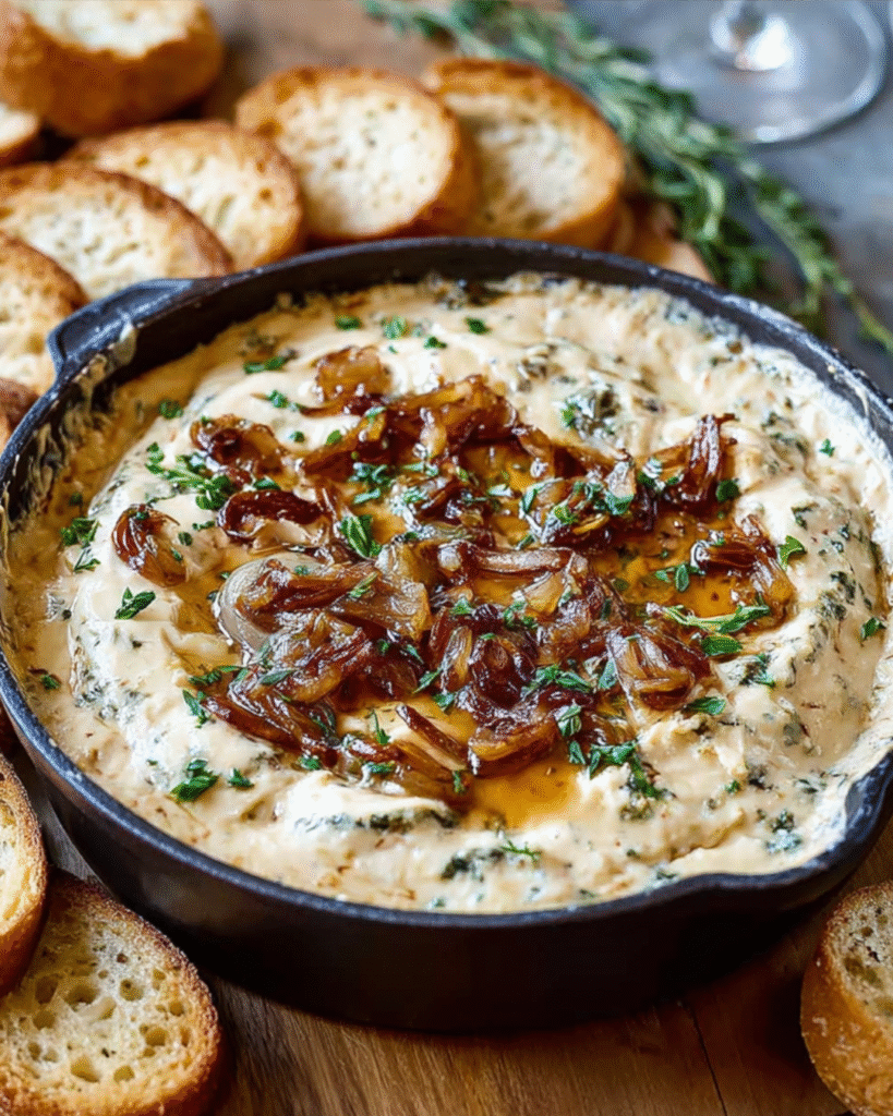 This appetizer is the definition of “sophisticated comfort food.” It takes the creamy, earthy distinctiveness of French Brie and marries it with the sweet, tangy depth of balsamic-caramelized onions. The result is a bubbling, golden dip that feels far more elegant than a standard queso or spinach dip, making it perfect for holiday gatherings or elevated dinner parties.
