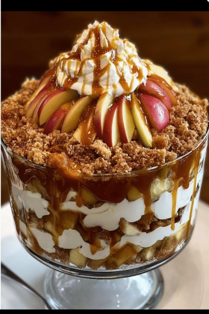 Garnish Beautifully Top the completed trifle with additional whipped cream, a generous caramel drizzle, crushed toffee bits or pecans for crunch, and decorative apple slices that have been dipped in lemon juice to prevent browning. For extra elegance, use a piping bag to create neat swirls of whipped cream around the edges.