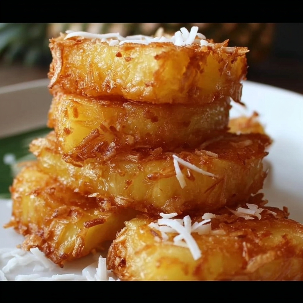 This Fried Pineapple with Coconut Crust transforms fresh pineapple rings into a tropical dessert sensation