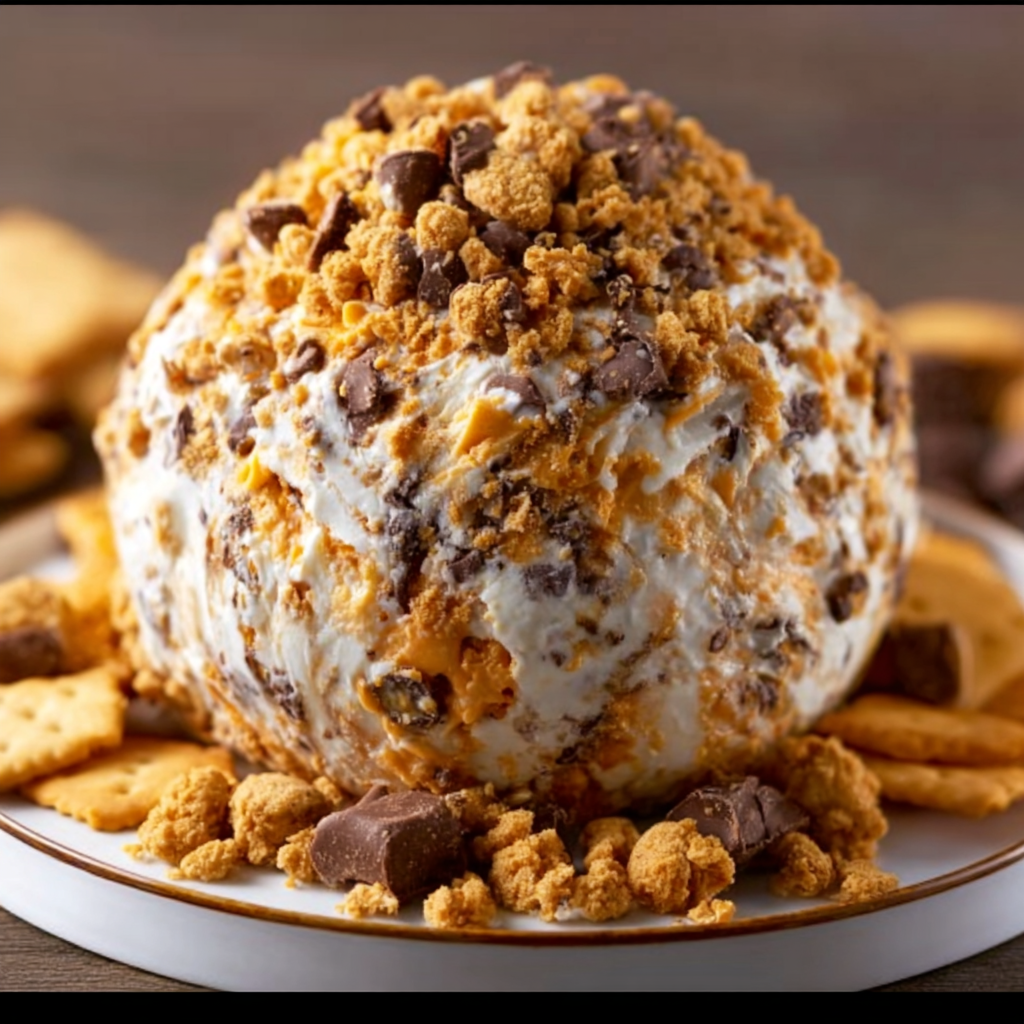 This no-bake Reese’s Cheese Ball transforms cream cheese, peanut butter, and powdered sugar into a