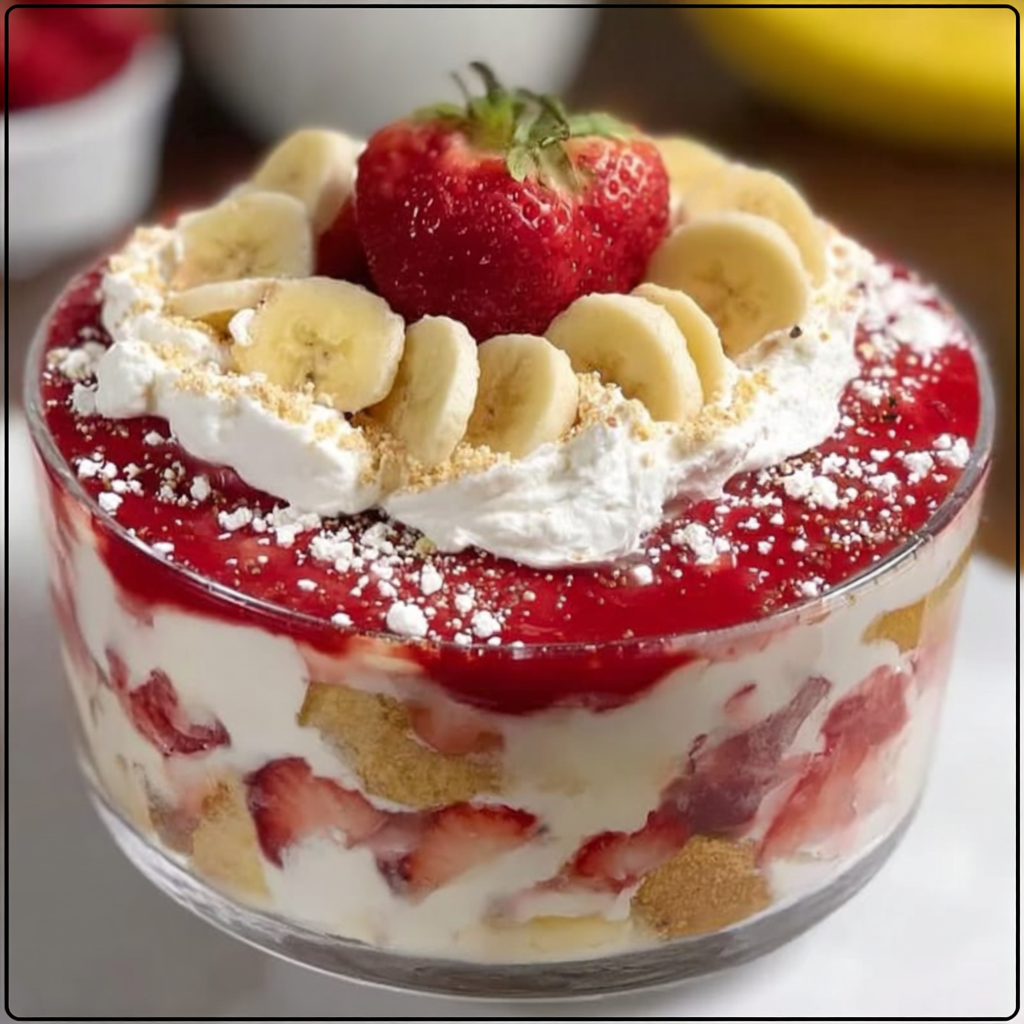 This no-bake layered dessert combines the nostalgic comfort of classic banana pudding with fresh strawberries