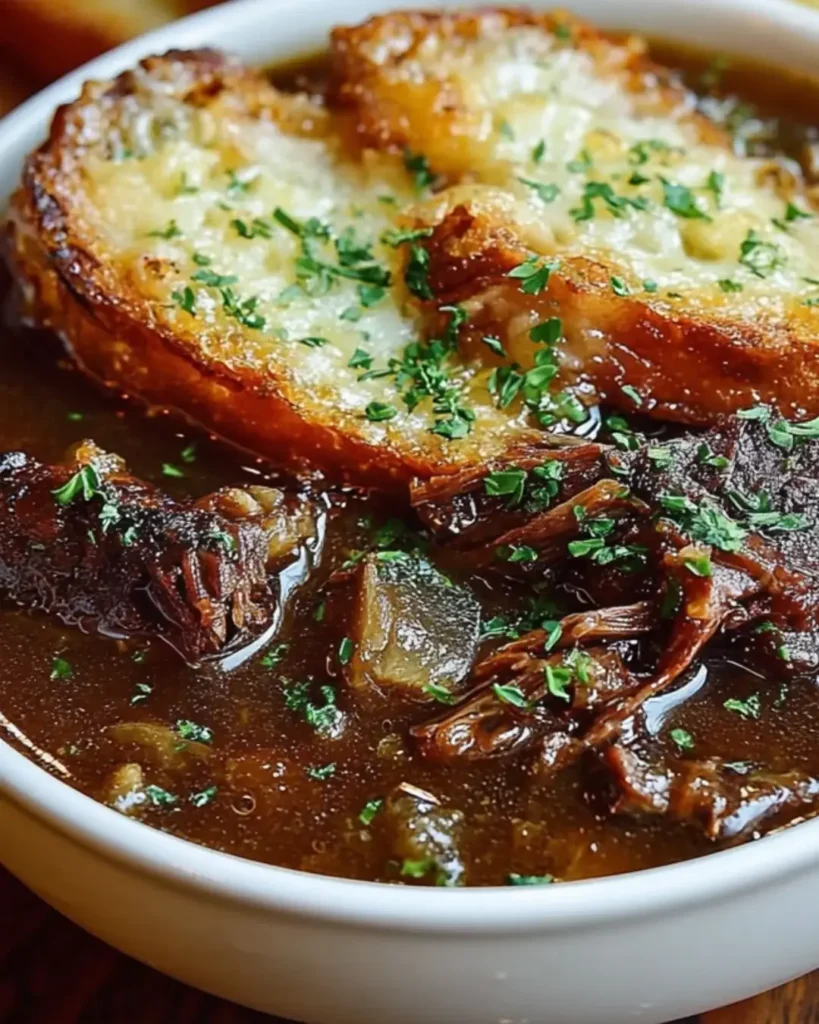 This genius fusion recipe combines the beloved elements of French onion soup—deeply caramelized onions, rich