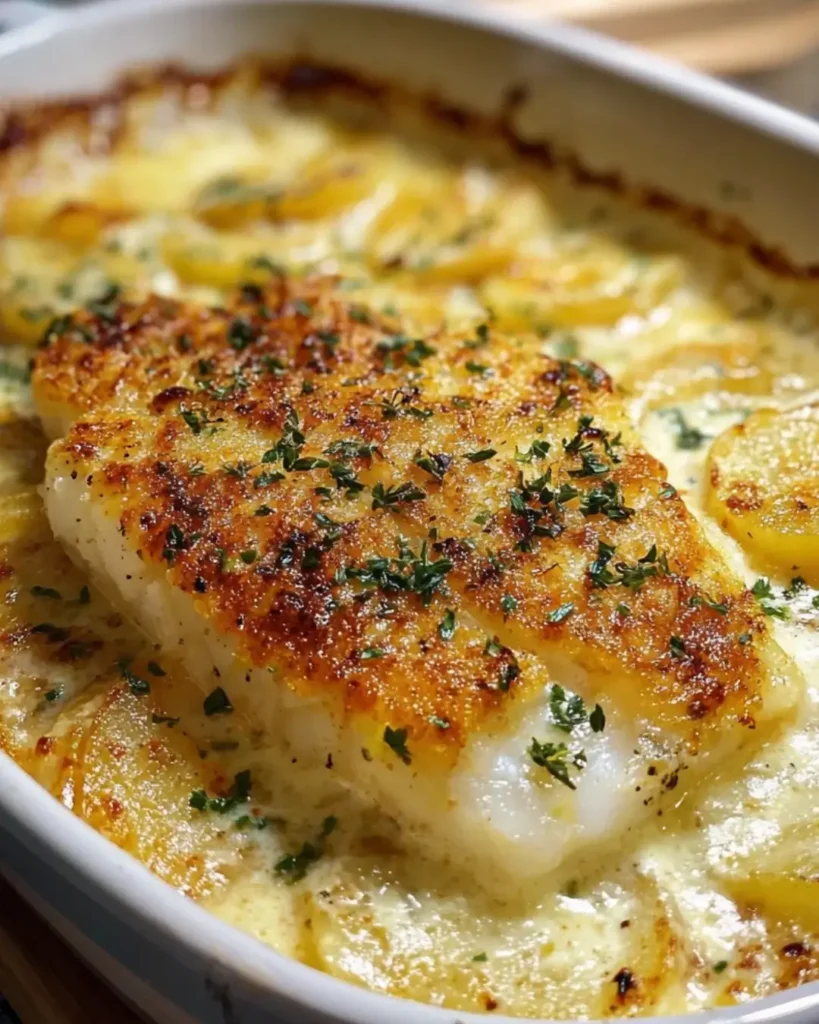 This elegant one-dish dinner layers thinly sliced potatoes and onions in garlic-infused heavy cream, tops