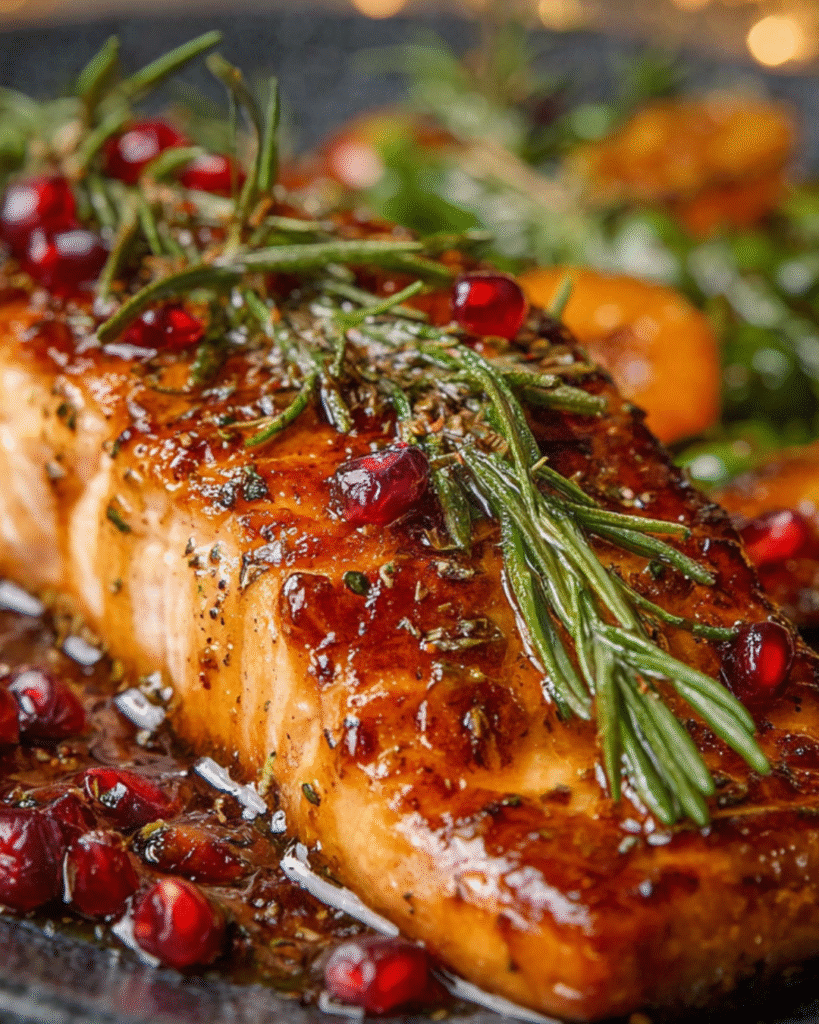 This elegant holiday centerpiece transforms a simple salmon fillet into festive fare by coating it