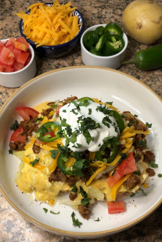 Taco Stuffed Baked Potatoes offer a satisfying fusion of a crispy-skinned baked potato and the