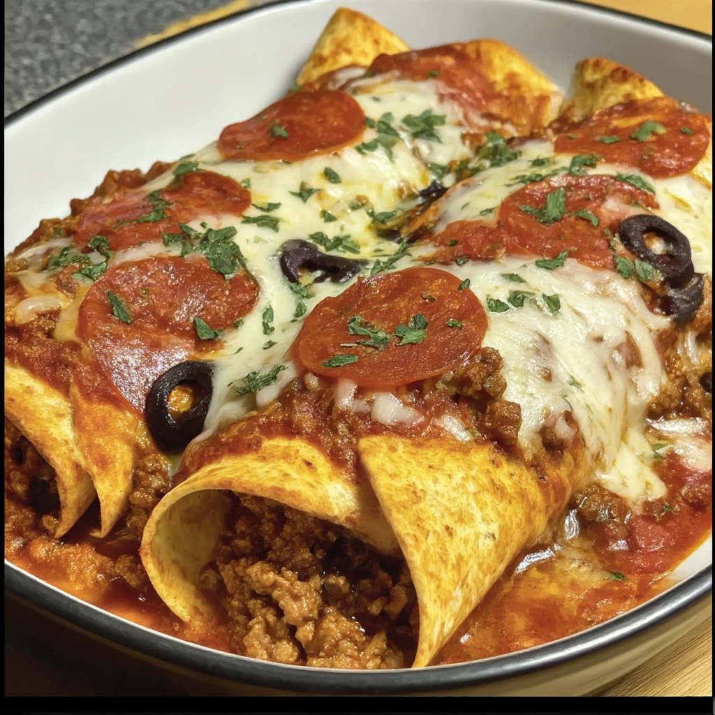 These Pizza Enchiladas combine the best elements of Italian pizza and Mexican enchiladas into one