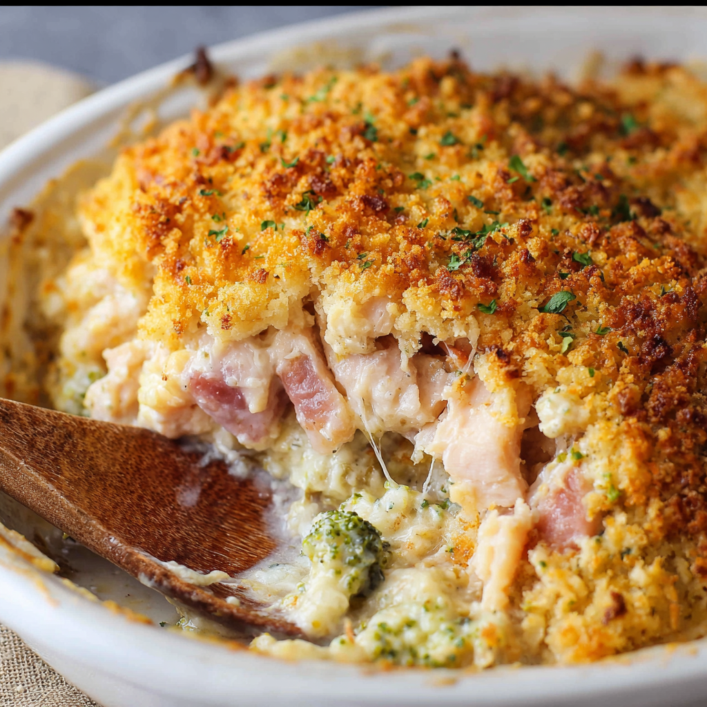 This adapted Chicken Cordon Bleu Casserole replaces traditional ham with smoked turkey for a lighter