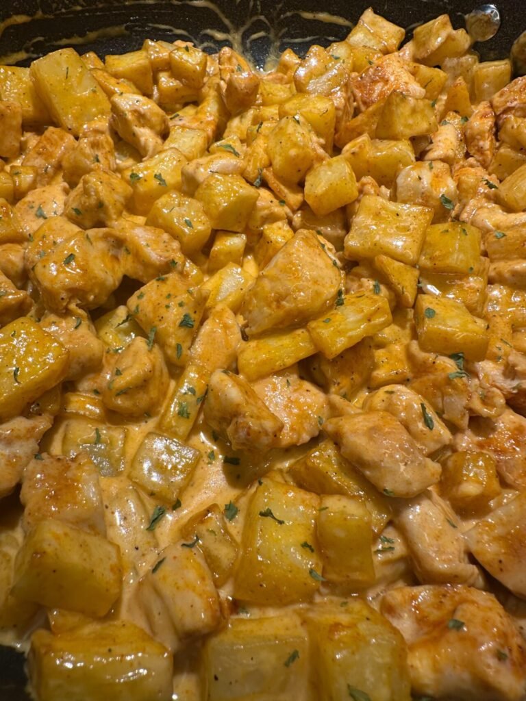 This flavor-packed skillet meal brings together tender bites of spicy chicken and crispy, golden potatoes,