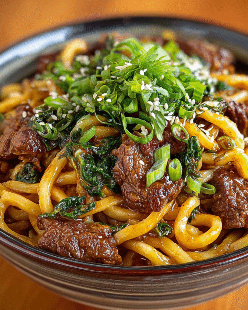 These beef udon noodles deliver authentic Japanese comfort food by combining tender slices of beef