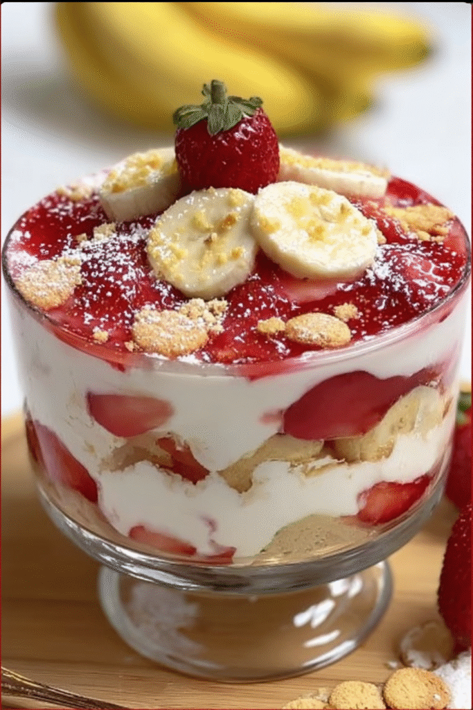 This no-bake layered dessert combines the nostalgic comfort of classic banana pudding with fresh strawberries