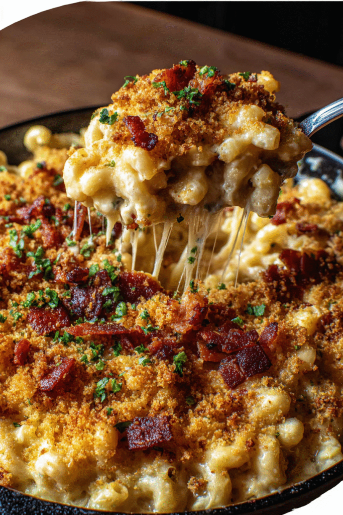 Oktoberfest Bacon Beer Mac and Cheese elevates classic macaroni and cheese into a pub-style indulgence