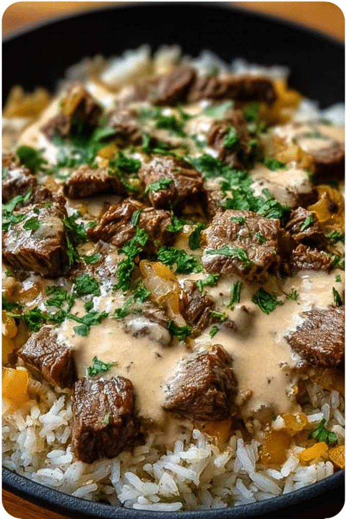 This comforting Tex-Mex dish combines perfectly seared, spice-rubbed steak with creamy, velvety queso sauce served