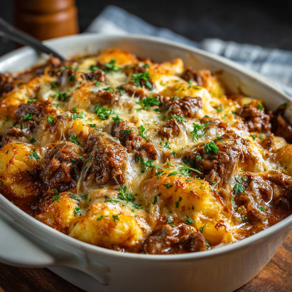 This French Onion Pot Roast combines chuck roast with caramelized onions, beef broth, and herbs