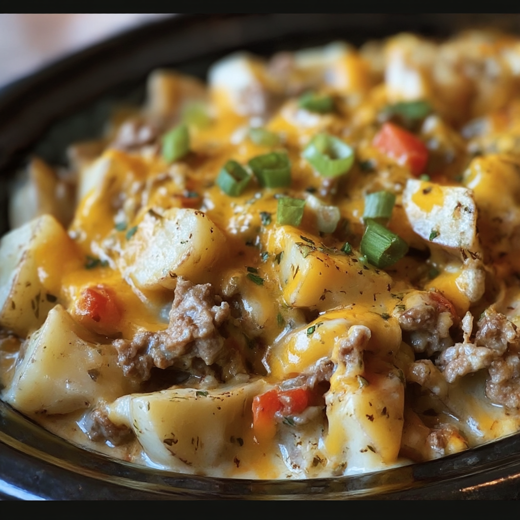 This Crockpot Cheesesteak Potato Casserole combines the flavors of Philadelphia cheesesteaks with the convenience of
