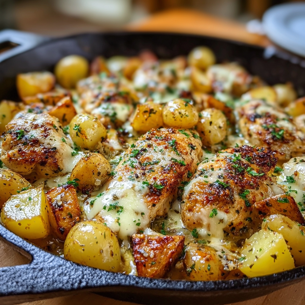 This one-pan Garlic Parmesan Chicken and Potatoes recipe delivers a complete meal that combines seasoned