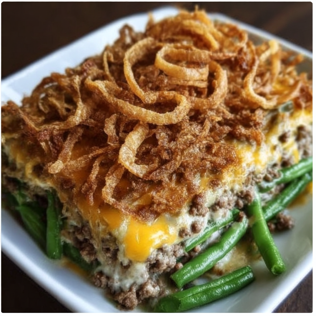 This Hamburger Green Bean Casserole transforms the classic holiday side dish into a hearty main