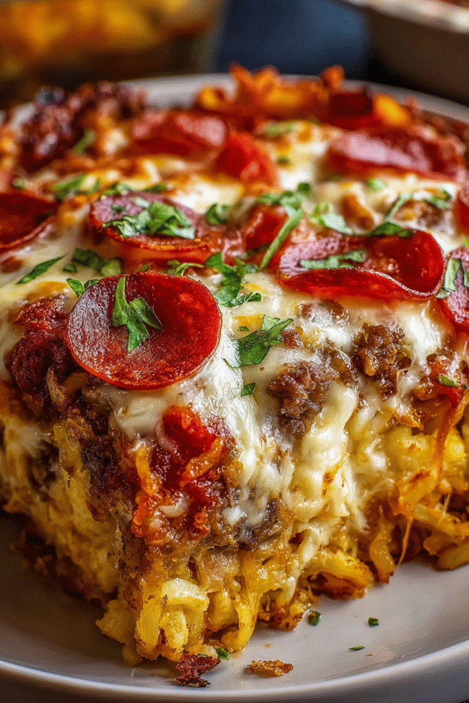 This hearty pizza casserole pie combines everything you love about pizza night with the comfort