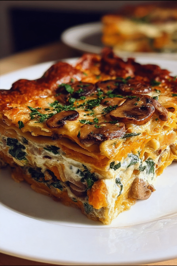 This innovative lasagna reimagines the classic Italian comfort dish by replacing traditional pasta noodles with