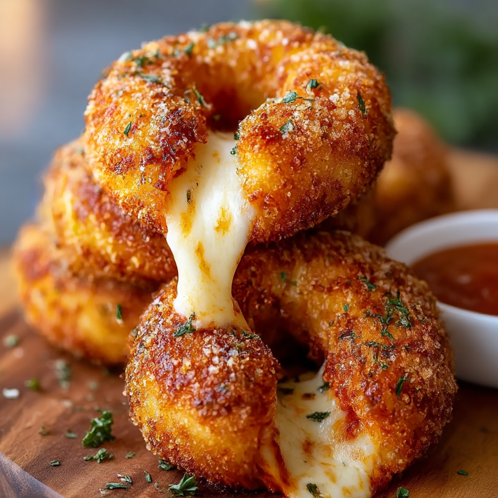 These Stuffed Pizza Onion Rings transform the classic appetizer into an indulgent fusion snack that