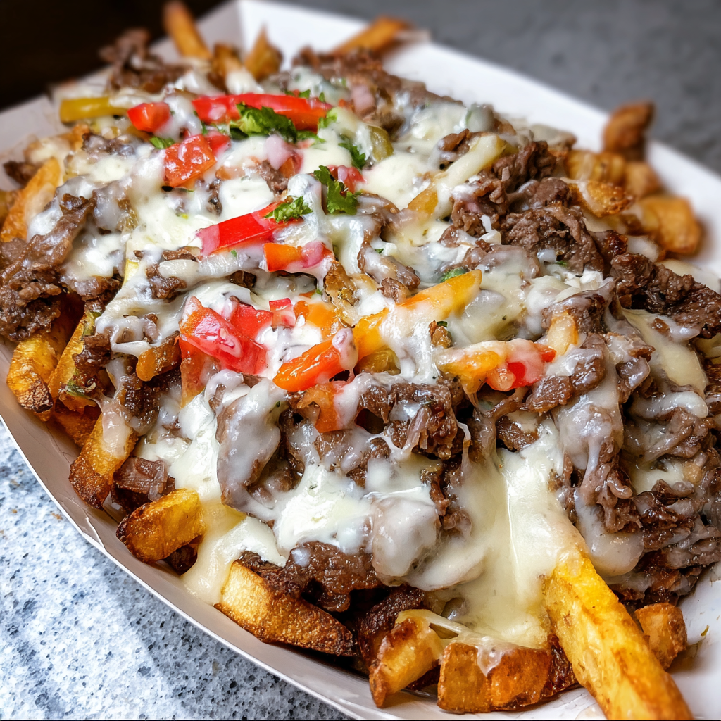 This indulgent dish transforms classic Philly cheesesteak flavors into a shareable loaded fries masterpiece, combining