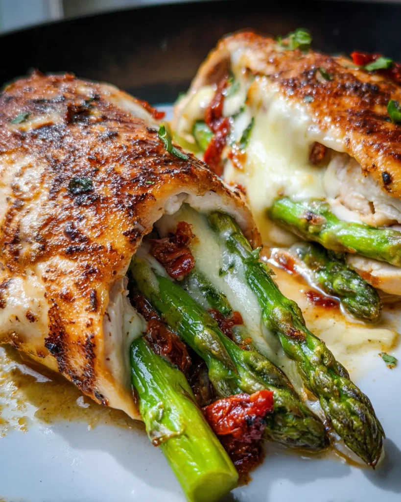 This Asparagus Stuffed Chicken Breast combines tender chicken breasts with asparagus, sun-dried tomatoes, and Parmesan