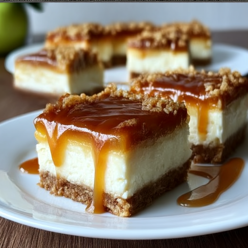 These Caramel Apple Cheesecake Bars layer a shortbread crust with creamy cheesecake filling, spiced apples,