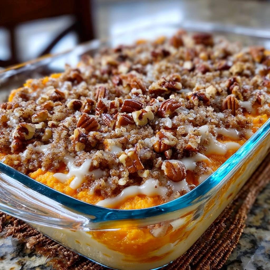 This Southern Sweet Potato Casserole combines mashed sweet potatoes with sugar, butter, eggs, and milk