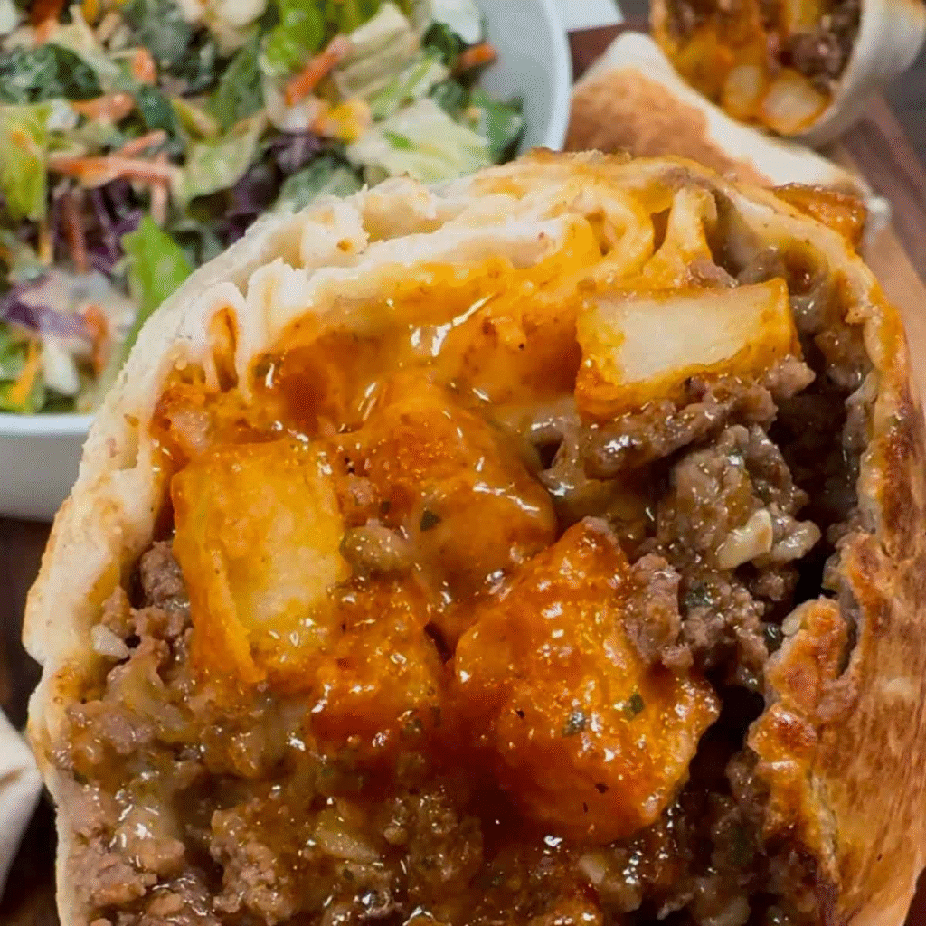 This recipe works because it combines complementary textures and flavors. Air-fried potatoes provide crispness that contrasts with the soft tortilla and savory ground beef. Spices like cumin, chili powder, and paprika create depth and warmth typical of Tex-Mex cuisine. Nacho cheese acts as a rich binding element, adding creaminess and flavor cohesion. Toasting the assembled burritos enhances texture by creating a crisp outer layer. With an estimated 550–650 calories per burrito, this dish offers a hearty, satisfying meal perfect for comfort food cravings.