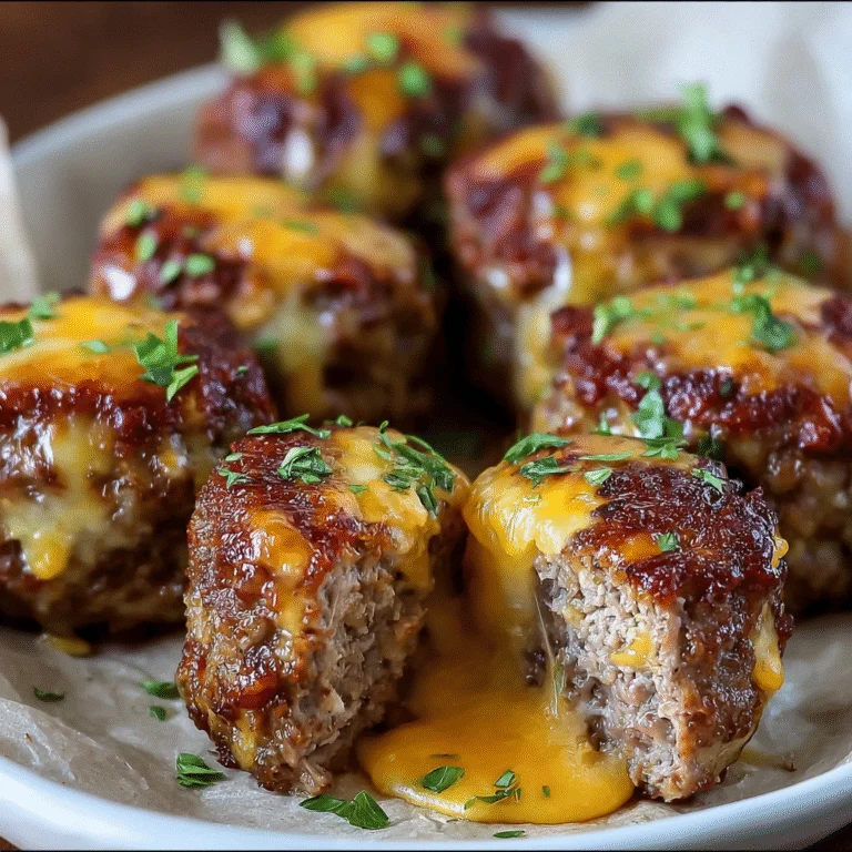 These Cheesy Stuffed Meatloaf Bites prove that comfort food can be both familiar and exciting when you add a creative twist. They take everything wonderful about traditional meatloaf and make it more fun, more shareable, and infinitely more impressive with that surprise cheese center that makes people smile with every bite. Whether you’re serving them at a party where they’ll disappear in minutes or making them for a family dinner that everyone will remember, these bites deliver satisfaction, surprise, and pure deliciousness in perfect individual portions. Get ready for requests to make them again and again—they’re the kind of recipe that becomes a signature dish!