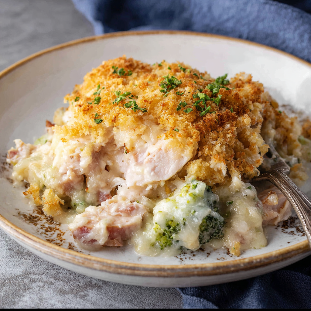 This adapted Chicken Cordon Bleu Casserole replaces traditional ham with smoked turkey for a lighter yet flavorful alternative that maintains the dish’s signature taste profile. The smoked turkey provides the essential savory, cured meat element while offering a milder flavor that allows the Swiss cheese and Dijon mustard to shine. This substitution creates a more accessible version for those who prefer poultry over pork while delivering the same satisfying comfort food experience.