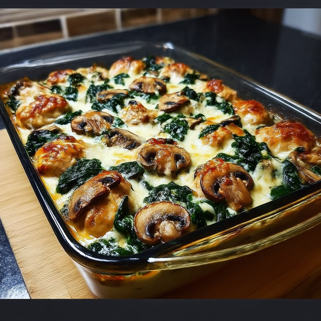 This Chicken, Spinach, and Mushroom Low-Carb Oven Dish delivers rich, satisfying flavors perfect for those following a low-carb or keto lifestyle. Combining tender chicken breasts with fresh baby spinach, savory mushrooms, and a creamy sauce, this one-dish meal provides substantial protein while keeping carbohydrates minimal. The blend of mozzarella and green onion cream cheese creates a luxurious texture that transforms simple ingredients into something restaurant-worthy.