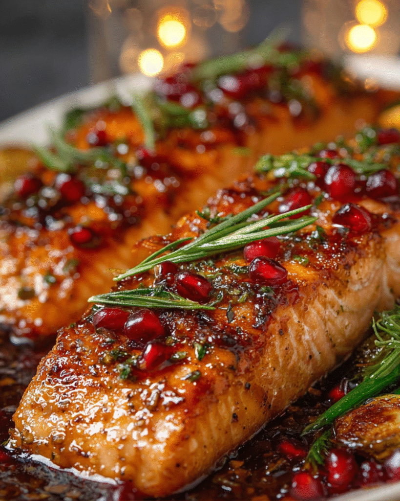 • Pomegranate Garnish – Scatter pomegranate arils over the finished salmon for jewel-like festive presentation and tart-sweet bursts.