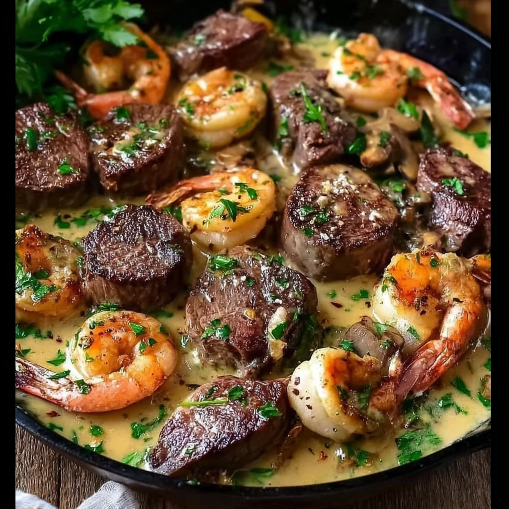 This Creamy Garlic Surf and Turf represents everything a special occasion meal should be – impressive, delicious, and surprisingly achievable. By following these detailed instructions and tips, you’ll create a restaurant-quality dish that delivers tender steak, perfectly seared seafood, and a sauce so good you’ll want to bottle it.