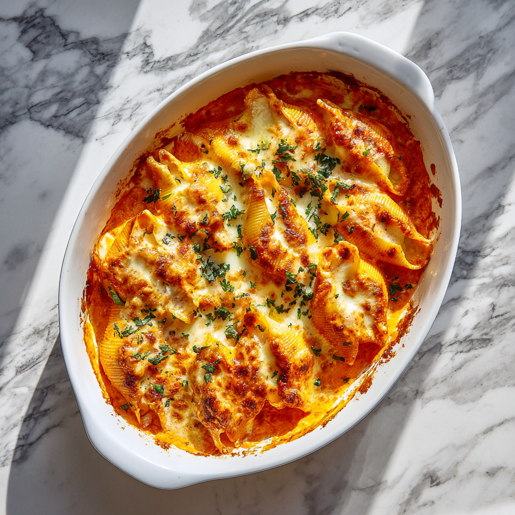 Stuffed pasta shells, or “conchiglioni ripieni” in Italian, are a relatively modern Italian-American creation. While stuffed pasta has ancient roots in Italian cuisine (think ravioli and tortellini), the large shell shape became popular in America in the mid-20th century. The addition of pumpkin is a contemporary twist that celebrates seasonal American ingredients while honoring Italian cooking techniques.
