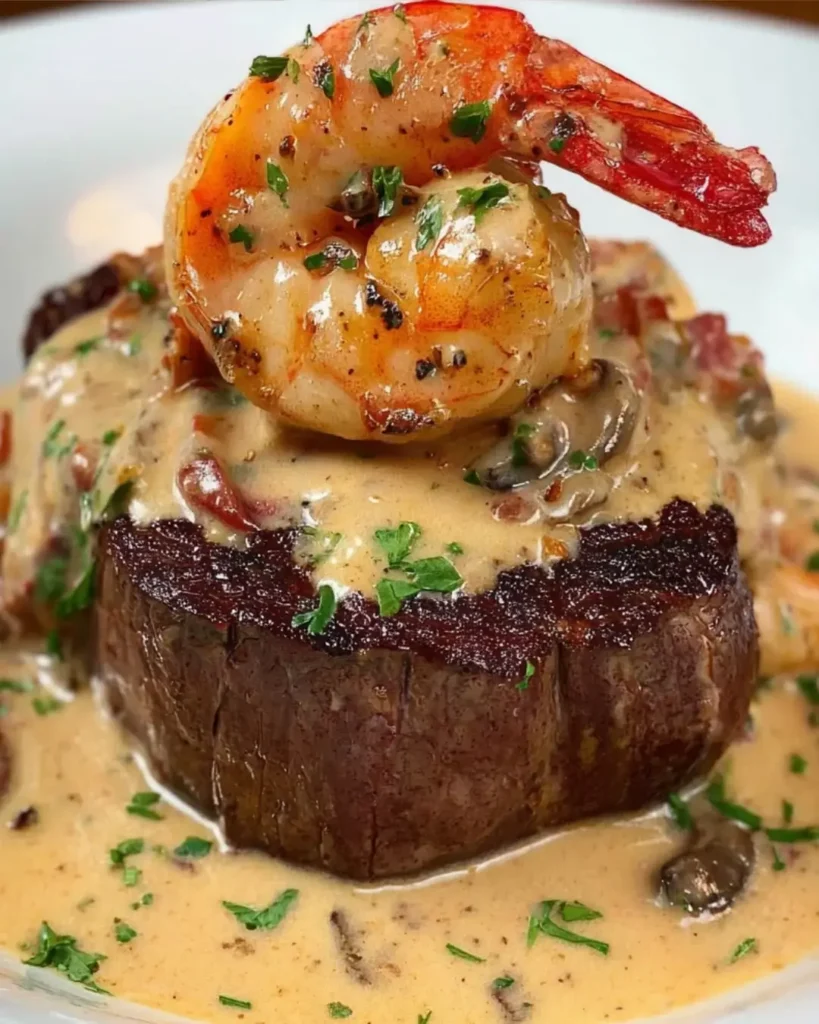 Ultimate Special Occasion Centerpiece – Few dishes communicate “celebration” quite like filet mignon crowned with lobster and shrimp in cream sauce, making this perfect for anniversaries, Valentine’s Day, or milestone achievements.