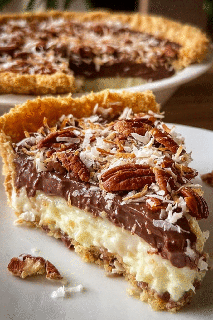 • Textural Variety – Each bite delivers multiple textures—crunchy toasted pecans, chewy coconut, gooey cream cheese layer, moist cake, and melted chocolate chips—creating an engaging eating experience.