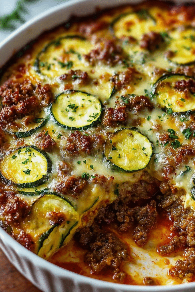 This ground beef zucchini bake represents the ideal intersection of comfort food and health-conscious cooking – satisfaction without compromise. There’s nothing complicated here: just quality beef, seasonal vegetables, classic Italian flavors, and proper layering executed with care. What elevates this from ordinary to exceptional is the attention to moisture management, proper seasoning technique, and understanding that balance between all components creates harmony. This is the kind of dish that becomes a weeknight staple, gets requested repeatedly, and transitions beautifully from casual family dinner to impressive entertaining. It proves that low-carb or lighter cooking doesn’t mean sacrifice – just thoughtful substitutions and technique. Whether you’re managing carbohydrate intake, seeking budget-friendly entertaining options, or simply wanting quick, satisfying meals, this zucchini bake delivers every time. The beauty lies in its versatility – endlessly adaptable while remaining fundamentally true to its Italian roots. So gather your ingredients, preheat that oven, and prepare to create a casserole that will become a permanent fixture in your dinner rotation.