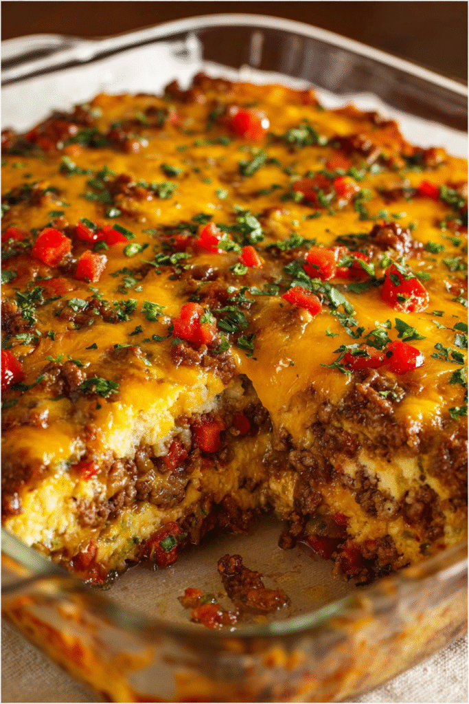Complete meal in one dish – This casserole contains everything you need—protein from beef, carbohydrates from the biscuit base, vegetables from peppers and onions, and dairy from multiple cheeses—eliminating the need for additional sides except perhaps a simple salad.