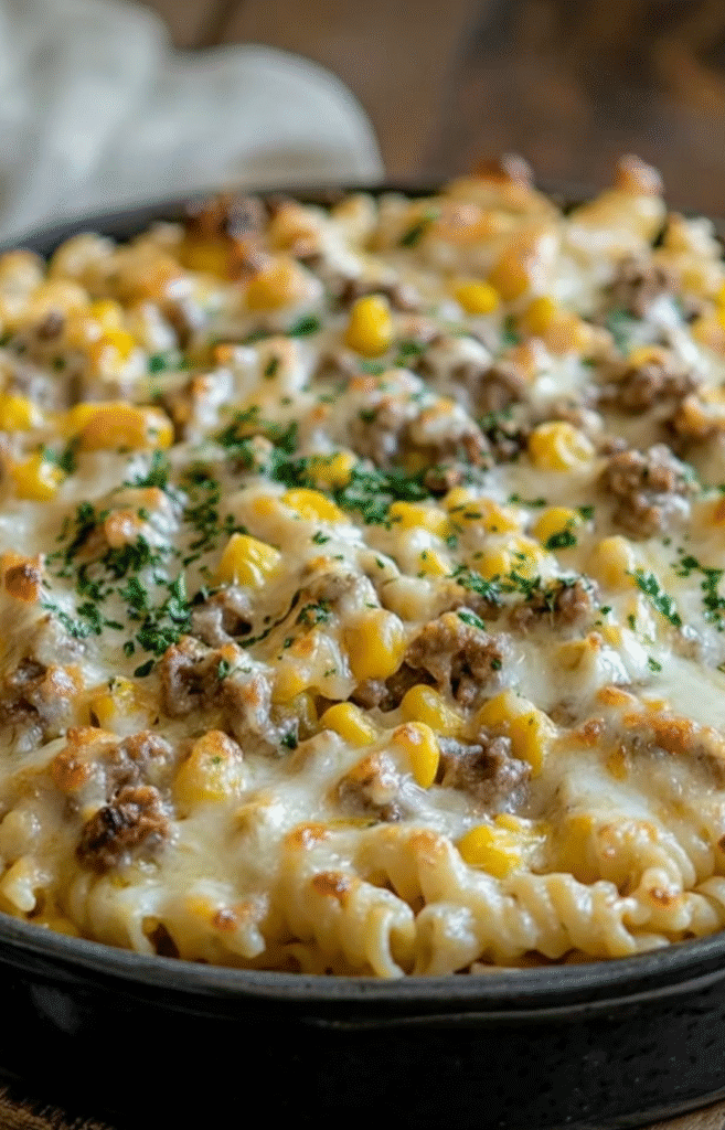 Loaded Cheddar Ranch Rotini Bake is the ultimate creamy, cheesy comfort casserole. Tender rotini pasta is tossed with seasoned ground beef, sweet corn, ranch seasoning, and a rich, creamy base before being topped with melty cheddar and baked until bubbly. It’s hearty, satisfying, and perfect for busy weeknights or family gatherings.