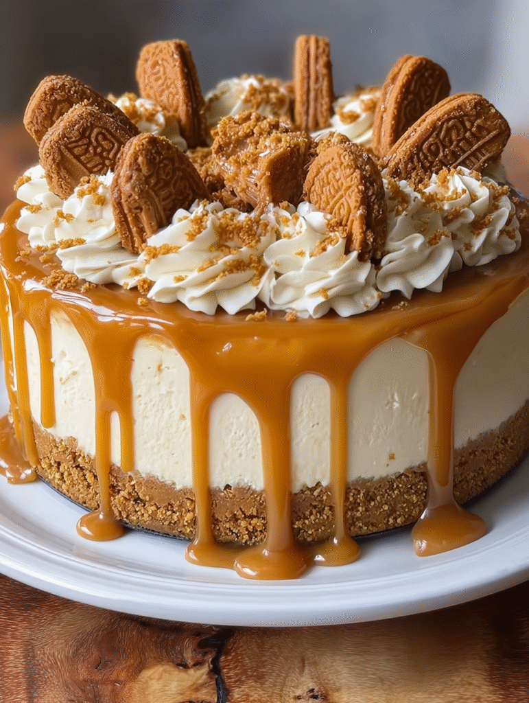 Introduction If you’ve ever experienced the addictive caramelized flavor of Lotus Biscoff cookies, you know they’re impossible to resist. Now imagine that beloved cookie transformed into a show-stopping cheesecake complete with cascading caramel drips, whipped cream rosettes, and a crown of standing Biscoff cookies. This Lotus Biscoff Cheesecake is a