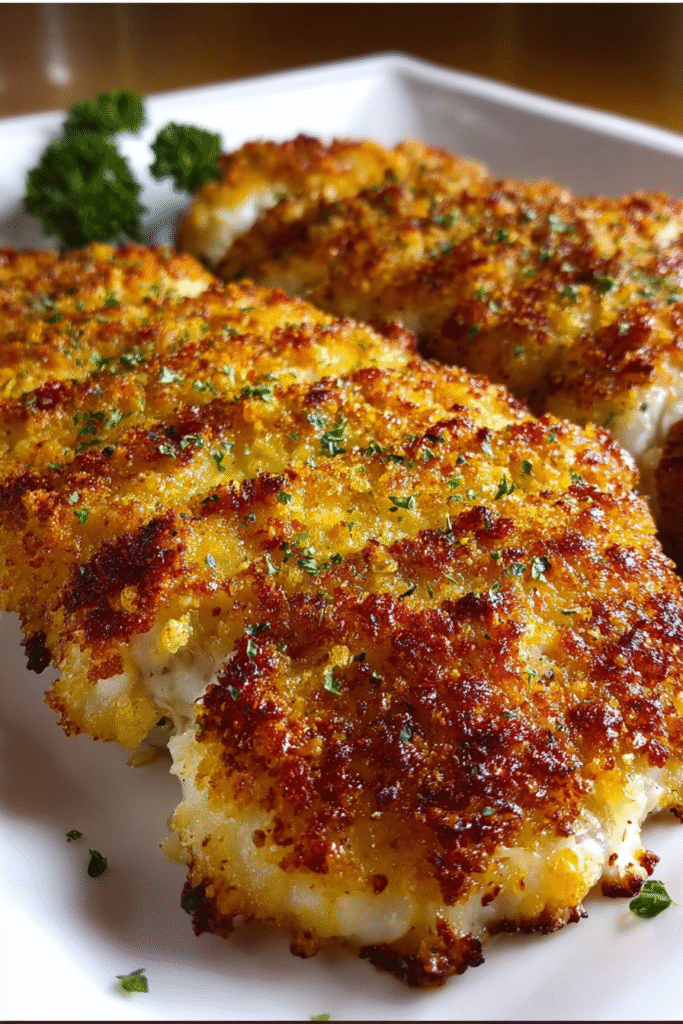 This retro-inspired chicken dish features juicy boneless breasts coated in a golden, ultra-crispy parmesan-breadcrumb crust that tastes like pure nostalgia. Pan-searing locks in moisture and creates irresistible crunch, while a quick bake finishes them to perfection—simple, family-approved comfort food with restaurant-level texture.