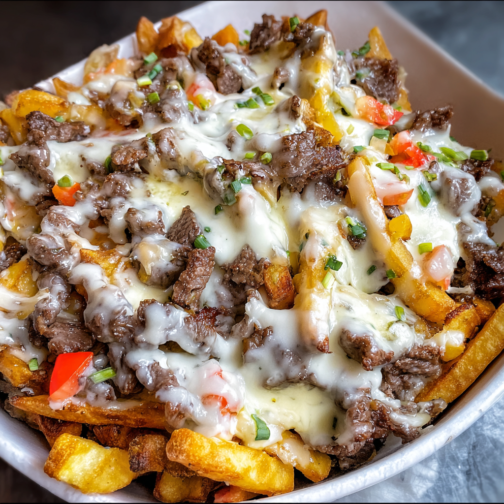 These Philly Cheesesteak Loaded Fries prove that sometimes the best innovations come from reimagining classics in unexpected ways. By eliminating the bread and building everything on a crispy fry foundation, you gain textural excitement while maintaining all the flavors that make Philly cheesesteaks iconic. The beauty of this recipe is its accessibility—even novice cooks can achieve restaurant-quality results thanks to the use of convenient frozen fries and straightforward cooking techniques. Whether you’re feeding a crowd during game day, treating yourself to an indulgent weekend meal, or impressing guests with minimal effort, this dish delivers satisfaction in every cheese-covered, steak-topped bite. For a slightly lighter approach, you can use air-fryer fries, reduce the cheese to 6 ounces, or substitute sirloin for ribeye, though the original recipe’s unapologetic richness is precisely what makes it so memorable.