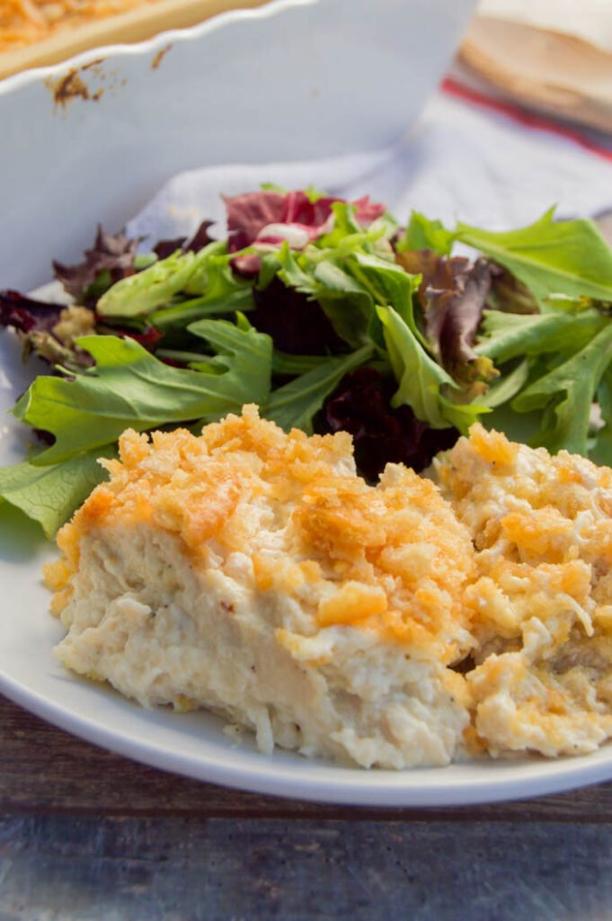 • Serve with steamed green beans, roasted broccoli, or mixed vegetables for balance against the rich, creamy casserole.