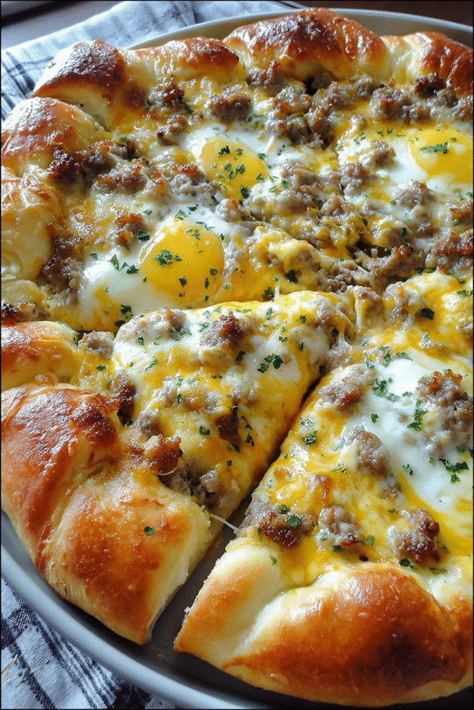 This Sausage Gravy Breakfast Pizza proves that traditional comfort foods can successfully adapt to modern convenience and fun presentation without sacrificing the essential character that makes them beloved. The recipe honors Southern breakfast tradition—sausage, gravy, eggs—while innovating through pizza format that feels playful and shareable rather than formal and plated. While this is certainly a rich, indulgent breakfast appropriate for special occasions rather than everyday eating, the controlled portion size and inclusion of eggs and sausage provide substantial protein that makes it more satisfying than many sweet breakfast options. The use of convenience products makes this accessible to busy families and novice cooks while still delivering homemade appeal and impressive results. Whether you’re hosting brunch, celebrating a holiday morning, feeding hungry teenagers, or simply want to make weekend breakfast feel special and fun, this golden, cheesy, gravy-topped pizza delivers Southern comfort, crowd-pleasing satisfaction, and breakfast excitement in every savory, perfectly melted, sausage-studded bite.