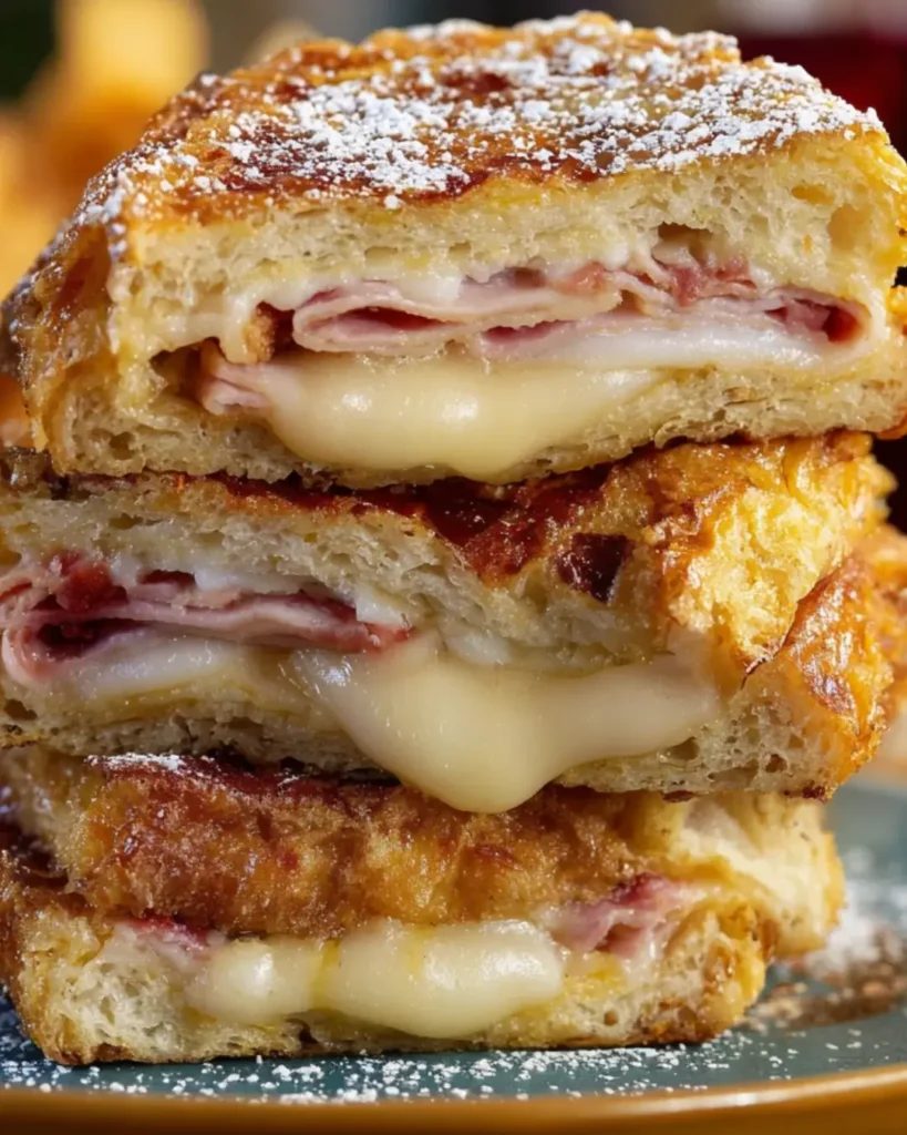 Savory Monte Cristo Sandwich represents American diner cuisine at its most playful and indulgent, taking familiar ingredients and combining them in unexpected ways to create something that transcends the sum of its parts. The quick 20-minute preparation makes this more accessible than you might expect for such an impressive result, while the straightforward technique proves that restaurant favorites can be successfully recreated at home without professional training. This sandwich demonstrates that sweet and savory combinations—often viewed with suspicion—can create harmonious, crave-worthy dishes when balanced thoughtfully. Whether you’re looking for special weekend brunch options that feel celebratory, wanting to recreate beloved diner classics at home, seeking unique sandwiches that go beyond ordinary lunch fare, or simply curious about the famous Monte Cristo that’s appeared on restaurant menus for decades, this classic recipe delivers authentic flavors and textures while adapting easily to personal preferences and dietary needs. Every bite offers that perfect moment where crispy, golden coating gives way to melted cheese and savory meats, finished with sweet powdered sugar and tangy jam in delicious, indulgent harmony that explains why this unusual sandwich has remained an American favorite for generations.