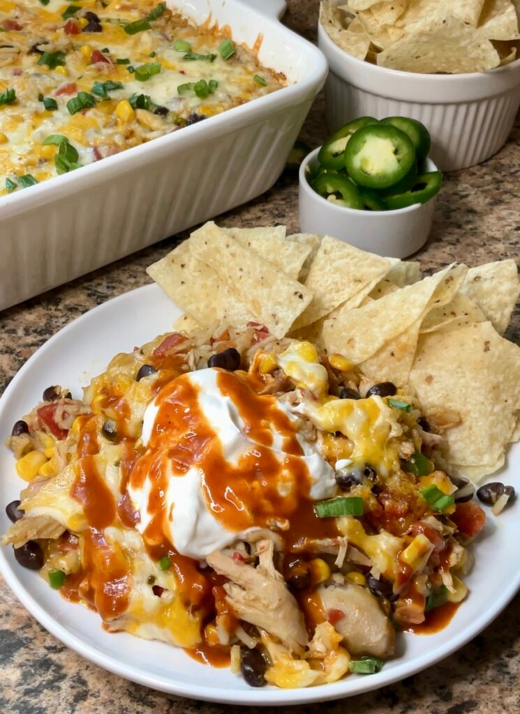 This Southwest Chicken and Rice Casserole proves that “convenience cooking” does not have to sacrifice depth of flavor. By combining pre-seasoned staples with fresh assembly techniques, you achieve a nutritious, high-protein meal that serves a large family with ease. For those seeking a lighter alternative, you can substitute the cheese with a dairy-free shred or use a leaner chicken breast to further reduce the caloric density without compromising the zesty spirit of the dish.