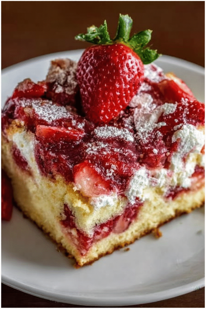 This recipe exemplifies how creative technique—intentionally not mixing layers—can transform simple ingredients into visually striking dessert that appears far more complex than its preparation suggests. The box mix foundation makes this genuinely accessible to novice bakers while the earthquake method’s forgiving nature eliminates precision anxiety. At approximately 350-400 calories per serving, this provides rich dessert appropriate for special occasions rather than everyday consumption, with the cream cheese and butter contributing substantial fat content. The 9×13-inch format makes this inherently party-focused, feeding 12-15 people from single pan and traveling well to potlucks where impressive presentation matters. The strawberry flavor makes this particularly suited to spring and summer gatherings, baby showers, or Valentine’s celebrations where pink appearance fits thematic needs. For slightly lighter version, use reduced-fat cream cheese (Neufchâtel) and decrease butter to ⅓ cup to cut approximately 40-50 calories per serving while maintaining acceptable texture. The warm-versus-cold serving debate creates two distinct experiences: warm emphasizes gooey cream cheese pockets and soft cake, while cold firms everything into sliceable, dense texture—both valid preferences worth trying. The optional add-ins transform basic recipe into customizable template, with coconut and white chocolate creating tropical profile while nuts add sophistication and crunch. This suits cooks seeking reliable, crowd-pleasing desserts that balance ease of preparation with impressive results and generous yield for group feeding.