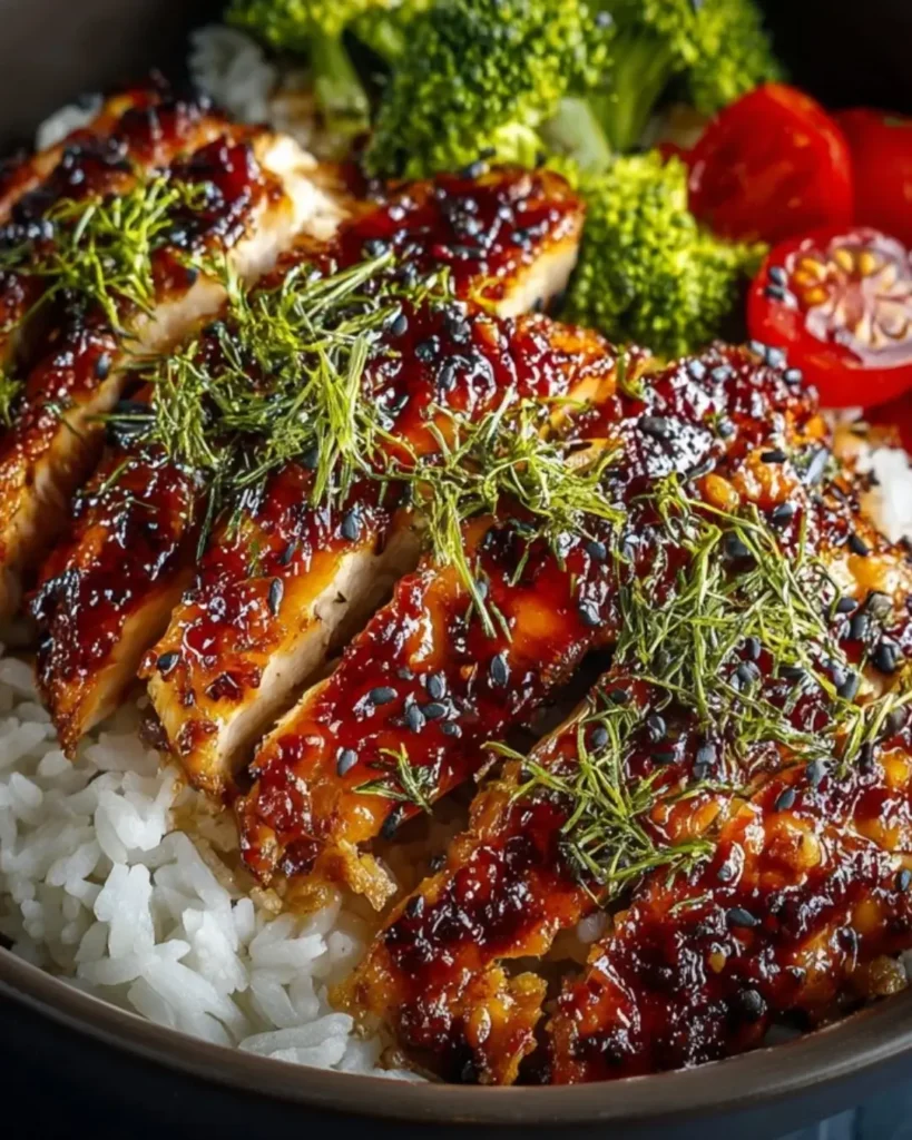 Serve Arrange the sliced teriyaki chicken on serving plates or a platter. Drizzle generously with the thickened teriyaki glaze, ensuring each piece gets coated with the glossy sauce. Garnish with sliced green onions and a sprinkle of sesame seeds for color and additional flavor. Serve immediately while hot.